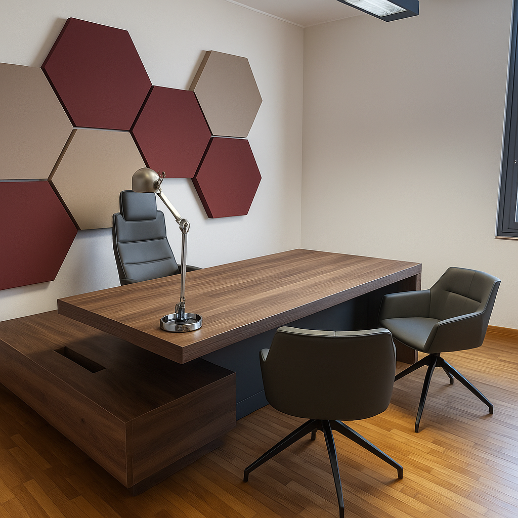 Pannelli acustici fonoassorbenti ad alte prestazioni, LATO DELL'ESAGONO 35 CM MISURA DIAMENTRO 70 CM SPESSORE 5 CM. Progettati e concepiti per il miglioramento e l’ottimizzazione dell’acustica di qualsiasi ambiente. Un connubio tra alte prestazioni acustiche, design, e semplicità di istallazione.